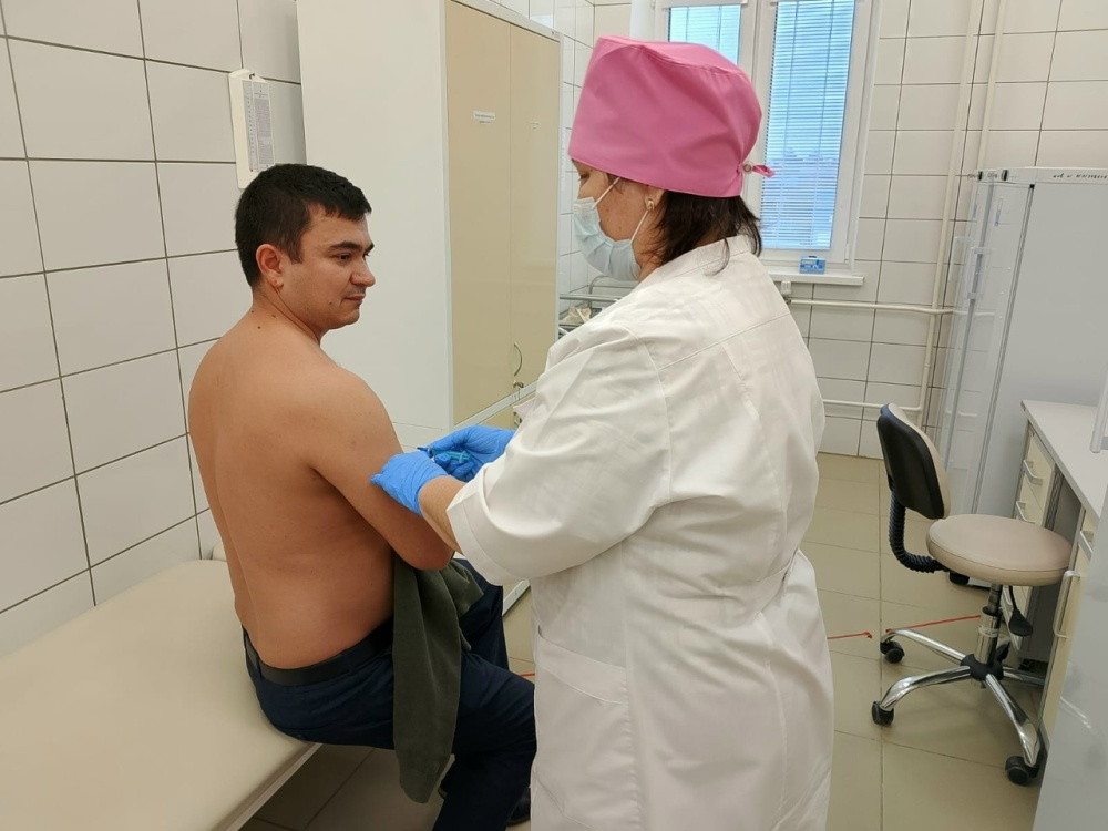 Сегодня наш главный врач Айдар Ралифович Хаматов и заведующий поликлиникой Ильдар Раифович Кабиров лично продемонстрировали, что вакцинация — это быстро, безопасно и совсем не страшно.