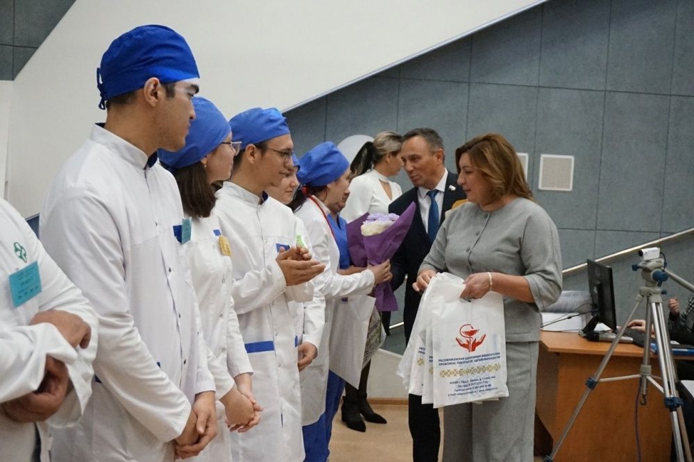 Торжественная часть мероприятия включала церемонию награждения молодых сотрудников первичного звена здравоохранения государственными наградами за их вклад в развитие отрасли.