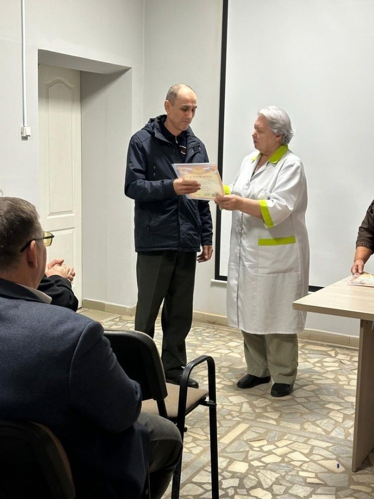 На встрече присутствовали водители-ветераны: Латыпов Эдуард Явдатович (стаж работы с 2008г. ), Хуснутдинов Ильдар Асхатович работает в больнице с 1991года, с 1995 года на должности тракториста трудится Тошмурзин Эдуард Владимирович.